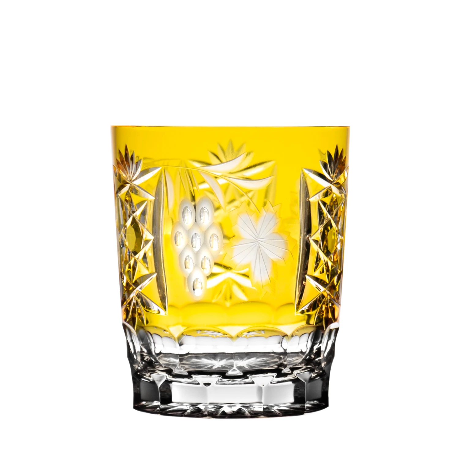 Genuine cased coloured lead crystal glasses with a grape design. It is a hand-polished, mouth-blown unique product.